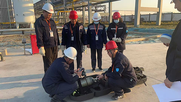 一、燃氣泄漏應急演練:快速響應保安全 演練總指揮首先向參演人員詳細講解了燃氣泄漏應急預案內容,重點強調了現(xiàn)場處置要點和注意事項。鍋爐車間燃氣泄漏應急演練正式啟動。演練模擬車間內發(fā)生燃氣泄漏事故,現(xiàn)場立即啟動應急預案。“正壓式空氣呼吸器是進入泄漏現(xiàn)場的關鍵防護裝備,必須正確穿戴。”安全員現(xiàn)場演示了空氣呼吸器的使用方法,從檢查氣瓶壓力、佩戴面罩、調節(jié)頭帶到測試氣密性,每一個步驟都進行了詳細講解。搶修人員按照規(guī)范要求,快速穿戴好空氣呼吸器,攜帶檢測儀器與防爆工具進入現(xiàn)場,迅速定位泄漏點并進行應急處置。